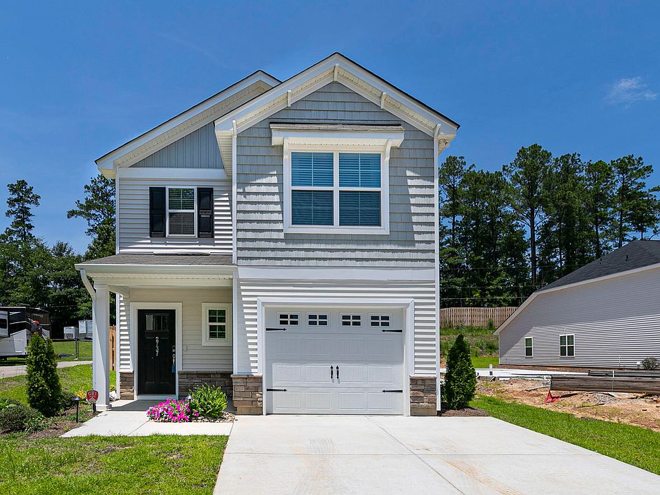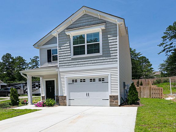Discover Central Creek--a thoughtfully designed new community in the heart of Goose Creek, featuring 115 homesites and charming new homes with durable fiber cement siding. This beautiful two-story home offers 3 bedrooms and 2.5 baths, with a welcoming covered front porch and an attached single-car garage. Inside, the kitchen with a walk-in pantry opens to a bright great room and breakfast nook, perfect for casual gatherings. Enjoy the covered rear porch for morning coffee or evening relaxation. Upstairs, the serene primary suite features a walk-in closet and spa-like bath with a linen closet and optional walk-in shower or separate tub and shower. Two additional bedrooms and a convenient laundry room complete this inviting home.