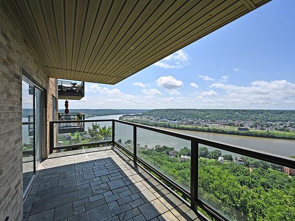 Great river & city views! One of the best in the building. Guest bedroom wall to the living room had been opened but could be closed back. Condo needs remodeled & is being sold as is. Heat, cooling, garage space #18, fitness center, pool & doorperson included in the HOA.