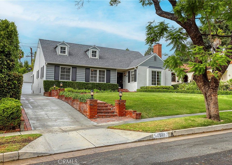 The floor plan is perfect with three bedrooms, two baths, and a large family room. The formal entry opens to the grand formal living room with gorgeous double hung windows, detailed wood trim, an exquisite fireplace, and preserved original hardwood floors. The dining room is formal as well and features a built-in, work of art glass cabinet. The family room is quite spacious with its own fireplace and dining area that looks out over the large rear grounds. The newly remodeled kitchen has quartz counters, stainless appliances, gorgeous cabinetry, and opens via glass sliders to a covered loggia for outdoor entertaining with its own fireplace, flatscreen, and bar.