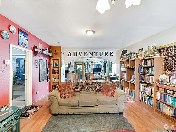Attention Anacortes HS Alumni! This used to be the AHS School Store! Great opportunity for a multi-generational home with private spaces for everyone. Home is located in great walkable neighborhood, close to schools, stores, medical and restaurants. Main home with 4 bedrooms and 1.75 bathrooms. Upstairs studio apartment with kitchen, free standing gas fireplace and full bathroom offers water and Mt. Baker views and a covered deck. Laundry room accessible to both sections of home. Fourth BR on main could be used as small studio, and is accessed from the interior of the home, or the exterior. It has a tiny bathroom, sink and frig. Fenced yard with nice garden space with some lovely plantings. Attached 1 car garage. So many possibilities!!