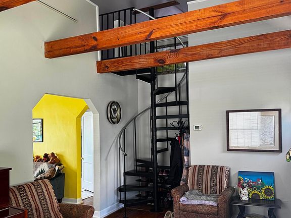 Welcome Home! With so much curb appeal, you will want to come see this sweet, very well cared for home tucked away on a quiet street in the heart of Waynesboro. With the manicured lawn, blooming peonies out front, and roses in the backyard, this home beckons you to come in. Once inside, you will be taken in by the vaulted ceilings that open up the space, and let in tons of natural light. Hardwood floors throughout the main floor (except bathroom). Completely renovated full bath, new tub and flooring, original tile walls. Plumbing replaced throughout. Updated kitchen with custom backsplash, new counter tops, a double oven, plumbed for a dishwasher, and access to your cozy back porch. Go sit out back and enjoy the gentle breeze and the view of your fruit trees, or go check out the garden and sit by the fire pit. Back inside, enjoy your spacious living areas, two light filled bedrooms, and a wonderful loft; which is currently being used as a bedroom on one side, and an art studio on the other. the unique custom spiral staircase brings you up to the loft, where you can fully appreciate the expanse of the main living area. This one is not to be missed! Make an appointment today, or come check it out during the open house this weekend!