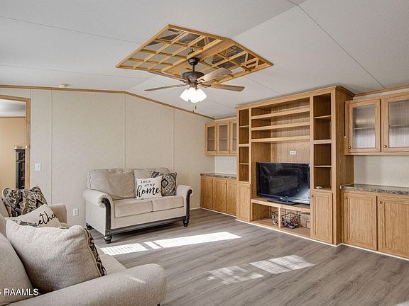 Well-maintained mobile home with 3 bedroom and 2 baths, offers a peaceful setting in the country. If you are looking for a mobile home with acreage, this is it. It features large bedrooms, ample storage and built-ins in the living room. The master suite includes a large walk-in closet and a master bath with a double sink vanity. The property also comes with a washer, dryer, and refrigerator, making it move-in ready. The backyard is fenced with a double gate access chain-link fence and includes a concrete parking pad.