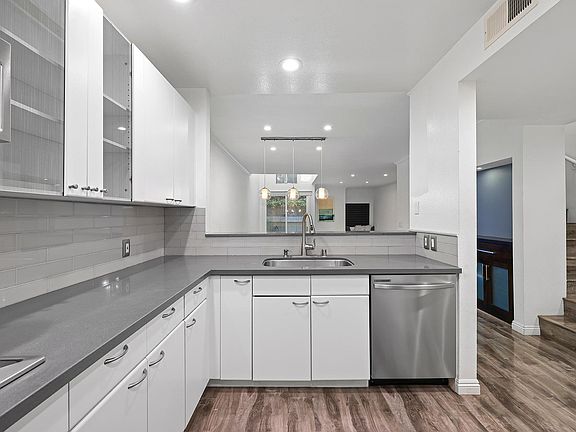 GREAT LOCATION. SHOPPING MALL, SUPERMARKET, FREEWAY NEARBY, LESS THAN 10 MINS DRIVE. MOVE IN READY TOWNHOME. STEPDOWN LIVING ROOM W/HARDWOOD FLOORS IN ENTRY & DINING ROOM. WOOD BURNING FIREPLACE, LARGE BALCONY. ALL WHITE EUROPEAN KITCHEN. MASTER WALKIN CLOSET & OVERSIZED SHOWER. SKYLIGHT, RECESS LIGHTING DISPLAY NICHES, 2 CAR TANDEM PARKING.