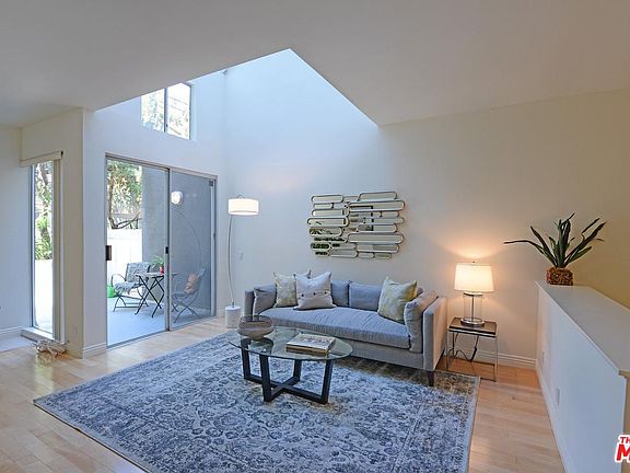 Fall In Love when you step into this 2-bed., 2.5-bath townhome located at the rear of the bldg., w/a serene feeling of privacy. The expansive, open living room offers a high ceiling w/skylights for abundant light, ample wall space for art work, a cozy w/b FP & new hardwood flooring. The living room opens to a spacious patio surrounded by greenery. It's perfect for a fun BBQ. Cooking is a pleasure in the beautifully updated kitchen w/stainless steel appliances. There are 2 bedroom suites upstairs. The large master suite features a walk-in closet, a desk area & tree top views. Laundry is inside the unit. Additional features include hardwood floors in most of the unit, new paint, security parking w/guest spaces, & a large separate storage room. Low HOA dues include EQ ins. & much more. Excellent central location w/easy access to the Westfield mall, restaurants, transportation & just steps to The Coffee Bean. The building was remodeled in 2014.