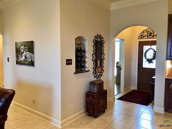 Beautiful custom Stone/Brick home built by David Humphries. Original owner. 3/2/2 + office or separate dining room. Tall ceilings with crown and floor moldings throughout. Open floor plan - Kitchen/Dining/Family. Kitchen has custom detailed rich stained cabinetry, granite counters, tumbled tile backsplash, stainless appliances, gas cooktop, and pantry. Family room features a corner brick fireplace with wood mantle surround, and gas starter. Master Bedroom and Bath are split. Master has floor to ceiling windows and vaulted ceiling. Master Bath has large walk-in shower, jetted tub, double vanities, abundant closet with built-in shelving. Two guest bedrooms have large windows, spacious closets and share a bath with large walk-in shower. Roof was replaced in 2017. Added stone patio and pergula in 2017. Large privacy fenced yard with dog pen. Landscaped with lighting, sprinklers front and back. Great location - minutes from Tyler and in Whitehouse ISD!