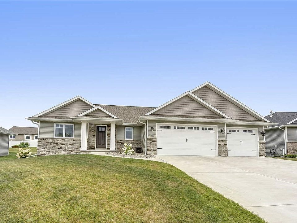 Like new! Less than 3 years old. Open concept split bedroom Craftsman style Village of Howard ranch with many upgrades. 3 panel doors. Luxury vinyl plank flooring w/ Advantech subfloor system which provides superior strength. Large Island with granite counters. Large pantry in spacious kitchen. Floor to ceiling stone fireplace. Anderson casement windows. Large master suite w/ walk-in closet and master bath w/ double vanities. Garage to basement entry. Insulated and sheetrocked garage. Large privacy fenced yard. Egress windows in lower stubbed for bath. A must see Focus on Energy home!