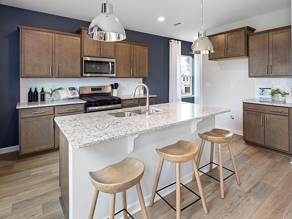 The Jellicoe plan is a beautifully upgraded tri-level townhome in the new Everton community near Brier Creek! This 4-bedroom, 3.5-bath home includes a private guest suite with walk-in shower on the entry level. The second floor features a spacious gathering room and a bright kitchen with on-trend stone gray cabinetry, opening to a deck overlooking a beautiful private wooded area. 7'' EVP flooring runs throughout all living areas for a modern, cohesive look. The owner's suite offers a tray ceiling with recessed lighting and a tiled shower with bench. Built to Energy Star standards, this home also includes smart home wiring with smart thermostats, flat-panel TV pre-wiring, and a Ring doorbell. Community amenities include high-speed internet, lawn maintenance, pool, fitness center, cabana, tot lot, dog parks, and disc golf!
