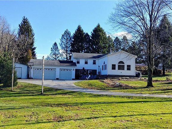 Prime location in Suffield Twp, nestled on 1.79 acres w/ a beautiful view of hole 8 of Suffield Springs Golf Course, this property is a must see. Wow, is the word you use the minute you walk thru the front door & enter into the towering ceilings of the 20 x 30 great room. The GR is equipped with built in speakers, a mini split that heats & cools the room, along w/ a wood burning fireplace & gorgeous picture windows over looking the course. This bi-level home has 4 beds and 2 baths. Upstairs you will find the remodeled kitchen w/ high-end cabinets, granite counter tops, under cabinet lighting, & a nice pantry. Off the kitchen is a large 14 x 23 dining area also w/ a wood -burning fireplace, built in speakers, & built-in cabinetry. Two beds and a bath make up the remainder of the upstairs. On the main level, you will find 2 more beds, a full bath, the laundry room, & a 11 x 22 bonus room off the garage with access to the back yard. The 3 car garage features electric, incl. a 220 outlet, & garage door openers. There is also a separate metal garage & shed for extra storage. Outside is entertaining at its best w/ composite decking & a pergola, a stocked koi pond w/ filters, pumps, & beautiful water falls. On top of that, there is a covered structure & patio w/ electric perfect for relaxing outdoors. Some other updates incl. new concrete driveway (2017), high efficient furnace (2016), & newer septic system. Call today