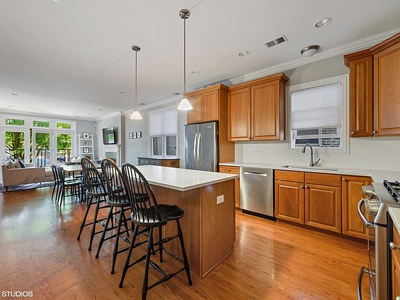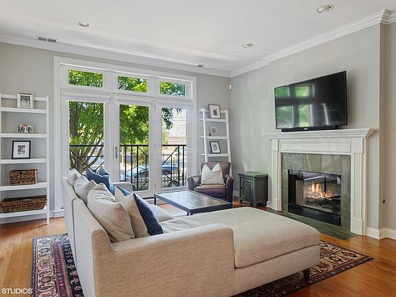 Bright and spacious duplex down in Burley Elementary School district. Unique floor plan with 3 bedrooms in the lower level and an open concept main level with hardwood floors. The gourmet kitchen was updated in 2019 with quartz countertops, subway tile backsplash, basin sink, Kohler touch-less faucet and GE Profile and Bosch stainless steel appliances. Living room features include a wood burning fireplace, crown molding and high ceilings. The lower-level Primary bedroom features a private brick patio, two walk-in closets, En Suite Bath with dual sinks, steam shower and heated floors. Separate laundry room with side by side LG washer and dryer (2019) on the same level as the bedrooms. 2nd and 3rd bedrooms share a jack and jill bathroom. New AC condenser installed in 2021 and furnace in 2018 with nest thermostat. Garage parking is included in the price. Whole Foods, Target, public transportation and Southport Corridor restaurants and shops right outside your door! Seller cannot closer before end of December. 2023 Taxes: $12,659.20 with no exemptions. Monthly HOA $245