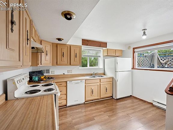 2BR, 2BA, tri-level home in the heart of West Colorado Springs, just minutes from historic Old Colorado City. 1,532 sf of thoughtfully designed living space with potential for 3rd bedroom. Step inside to discover beautiful wood laminate floors through the main & lower levels, main level features a spacious family room that leads you to the upper and lower levels. The primary bedroom is a true retreat, boasting a private balcony that overlooks the serene backyard. The lower level offers a generous living room centered around a cozy wood-burning stove and flows seamlessly into a separate dining area. Kitchen offers ample cabinets and counter space, along with all appliances included. Backyard features a covered deck, 2 storage sheds, a greenhouse and natural landscaping with mature trees & shrubs. Nestled on a .17-acre lot with a covered carport for two vehicles and plenty of room for small boat or RV parking, this property is located within walking distance to shopping, schools, restaurants, & parks and no HOA!