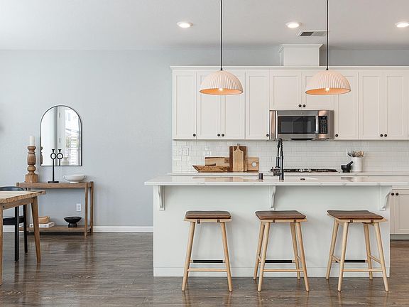 Attached two car garageLow-maintenance yardLarge islandStylish lightingModern living spaceVegetable garden setupHigh ceilings