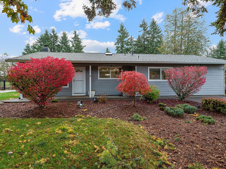 Single-level home with extensive updates and well-planned improvements throughout. New primary suite addition completed in 2024 includes large bedroom, bathroom, walk-in closet, and new Trex deck. Both bathrooms remodeled in 2024 with heated tile floors. New Hardiplank siding and full exterior paint in 2024. New flooring in the rear of the home (2024) and new carpet in the bonus room (2025). Dimmable lighting throughout. New furnace and air conditioner installed December 2022. Kitchen updated with new stainless appliances—dishwasher, stove, and microwave hood (2024). Vinyl windows throughout. Roof well maintained. Automatic outdoor sprinkler system and lighting. Water feature in front yard. Fenced backyard with new iron gate (2024). Large concrete patios around home and garage/shop. Two-car garage/shop includes storage above, power, and a fiberglass basketball backboard. Ample off-street parking for RV, boat, or recreational vehicles. Large fire pit area. Yard has been serviced with quarterly pest control for approximately 10 years. Situated on nearly half an acre at the end of a quiet street bordering the urban growth boundary. Surrounded by larger parcels providing open views and privacy. Level driveway and single-level floor plan for easy access. Open layout with large windows and three skylights for natural light. Fully sprinkled yard and landscaped grounds. Convenient location approximately two miles from freeway access. Safe, established neighborhood with long-term residents. This updated single-level home combines modern improvements with a practical layout and nearly half an acre of private space. A new primary suite addition completed in 2024 includes a spacious bedroom, walk-in closet, and private bath. Both bathrooms were remodeled in 2024 with heated tile floors. Exterior updates include new Hardiplank siding and full paint in 2024. Interior updates feature new flooring in the rear of the home (2024) and new carpet in the bonus room (2025). Much more!