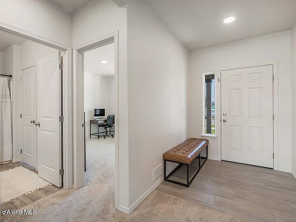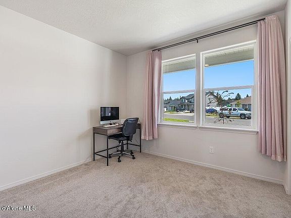 This Spacious almost 3,000 sq. ft. home, featuring 4 bedrooms, 3 full bathrooms, and a 3-car garage with lots of storage. Perfectly situated on a generous 0.32-acre fully fenced lot, this property offers plenty of room to live, relax, and entertain. Conveniently located near shopping, restaurants, and top-rated schools, with easy access to both CDA and Spokane. Step inside to an inviting open-concept layout with a sleek kitchen that boasts quartz counters, ample Huntwood cabinetry, a large walk-in pantry, and a sunlit dining area that flows effortlessly into the large great room — ideal for family gatherings and entertaining.Main floor bedroom/office with direct access to a full bath offers flexible living optionsUpstairs, you'll find a versatile loft space, perfect for a home office, playroom, or media area. Luxurious primary suite is a true retreat, featuring double doors, a coffered ceiling, and a generous en-suite w/walk in closet. Home has A/C, full sprinklers, RV/Boat parking, and room for a large garden which are an added bonus. Fully insulated and finished 3 car garage. Lots of built in value with the backyard landscaping, sprinklers and fencing added! Home backs to future apartment development-no buildings will be built directly behind the home rather there is to be a designated parking area along the back fence!