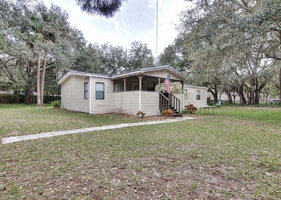 4 Bedroom, 2 Bathroom Mobile Home on 1.25 Acres! This home features wood flooring throughout all the main living space with tile flooring in the wet rooms. The kitchen features solid surface counter tops, wood cabinetry, closet pantry, and a breakfast bar. The master bedroom offers a walk in closet and a spacious bathroom with his & hers sinks. This home boasts fresh paint, a metal roof, a fully fenced yard, and mature oak trees all over the property.