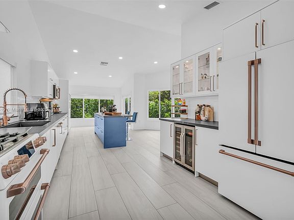 Great Opportunity in Lago Mar! Seller is motivated and ready to help with concessions for new roof! Beautifully upgraded home in the sought-after Lago Mar community of West Kendall with exceptional attention to detail. It features sleek porcelain flooring, vaulted ceilings, and high-impact windows/doors. The stunning kitchen boasts GE Café appliances, a kitchen island, porcelain countertops, tiled backsplash, and modern cabinetry. Additional upgrades include a massive in-suite bathroom and custom-built walk-in closet for the primary bedroom, large utility/laundry room, a tankless water heater, a water filtration system, garage storage space, and a new AC system with handler, condenser, and ducts installed in 2020. The spacious backyard is perfect for a pool and entertainment.