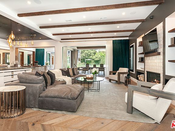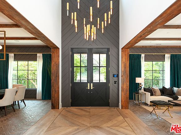 Custom built celebrity-owned estate in the prestigious Royal Oaks neighborhood. With soaring ceilings and sliding walls of glass, this expansive home seamlessly blends indoor and outdoor spaces, creating a harmonious, energetic flow. Inspirational and practical, the gourmet kitchen is a chef's dream- featuring three islands, a La Cornue range, two dishwashers and state of the art appliances. The main bedroom suite is like no other- with romantic high-pitched beams, a fireplace, private patio, lounge area and an immense walk-in closet. There's also a home theater, a gym, wine room and a two-level guest house with full kitchen and two bathrooms. This masterpiece is situated on park-like grounds with mature palms, a sparkling pool and spa. An outdoor area with a built-in lounge, firepit, and fully equipped kitchen with pizza oven, is the perfect place to entertain, day or night. Combining art, design and functionality, this architectural marvel elevates life to a whole new level.