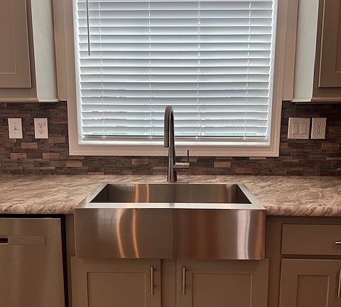 Open-air front porchLarge center kitchen islandModern kitchen appliancesLvt flooring throughout homeCrown moldingMaster bath double sinks