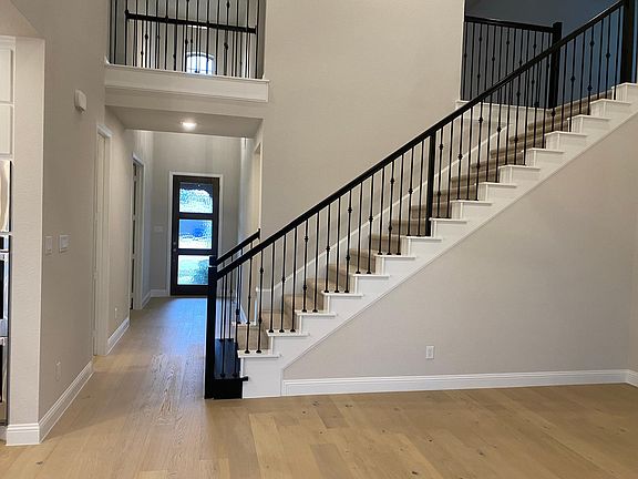 Located in prestigious M3 Ranch community, this beautiful 2- story brick home boasts 4 bedrooms, 3 and half baths, study, game room, media room, and a covered front porch. This home features soaring ceilings, wood floors, fireplace, and a large gourmet kitchen with double ovens, custom shaker cabinets and quartz countertops! The main bathroom is spacious with a drop-in tub, seperate shower, and split vanities.
