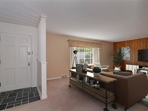 Solid brick multi-level with room to roam! Wonderful first floor layout flows nicely. Sun-drenched, spacious living room opens into the dining room and the eat-in-kitchen. You'll love the perfect breakfast nook. Well-preserved hardwood floors waiting to be rediscovered under the wall to wall carpet on the main and second levels. Upstairs are the three roomy bedrooms and full bath. Downstairs is a sprawling, flexible floor plan with another bath attached to the laundry area. Plus find two finished rooms, including game room with wet bar, and endless storage. Plenty of room for an office, exercise space, separate playroom- the possibilities are endless! Two car garage and extra off-street parking. All this in a wonderful neighborhood close to shopping and highway access. Move right in and give it your personal touch!