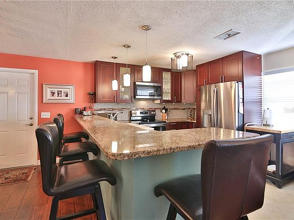 LOCATION, LOCATION, LOCATION!! Come check out this RARELY available, renovated Dunedin salt water pool home! AC was replaced in 2015 and insulation was added in 2016 to make the home more energy efficient. It boasts beautiful oak hand-scraped engineered wood floors throughout the majority of the home. Travertine floors cover the foyer, kitchen and both bathrooms. The IKEA kitchen features cherry wood cabinets, granite counter tops and and brand new stainless steel appliances. Both bathrooms were renovated in 2019, one with newly installed Bathmaster tub and shower. A generous master suite features a walk-in California closet complete with en-suite. Three sets of sliding glass doors open to the screened pool patio to extend your living area to the outdoors and bring in lots of natural light. Enjoy cooling off in the pool under a large screen enclosure, which was recently re-screened. The outdoor space is fantastic for entertaining family and friends with a generous sized patio. The house has a great curb appeal with shingle roof, a double garage door and a large circular driveway. Conveniently located near major shopping centers including Countryside Mall and a short drive to Historic Downtown Dunedin, famous Honeymoon Island State Park. Don't miss out on a chance to own a stunning pool home in Dunedin! ALL MEASUREMENTS TO BE VERIFIED
