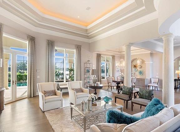 Located on the private, Royal Palm-lined enclave of Banyan Island in Grey Oaks, this impeccable residence was constructed of the highest quality materials and features scrupulous design throughout. From the 25 foot ceilings in the pillared entry to fully renovated chefs kitchen to the outdoor area created for entertaining, this home is an architectural masterpiece and is sure to impress. Warmth and sunshine give a bright, and airy ambience to the entire residence, this open floor-plan offers separate living and family rooms, gas fireplace, custom cabinetry and luxurious master suite. In addition to all of the unmatched amenities offered by Grey Oaks, you will enjoy custom private pool and spa with water feature, large screened lanai with shaded dining areas and dazzling views of the lake and golf course.