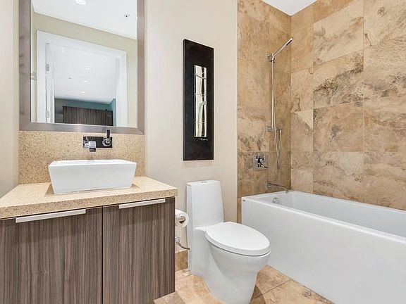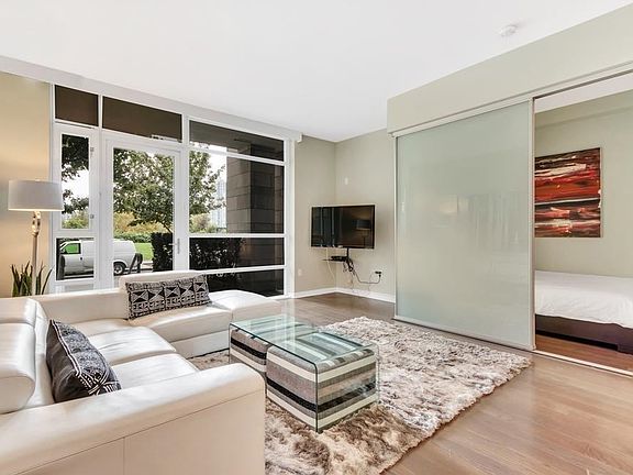 Available till April 30, 2026! Embrace luxury in this fully furnished ground-floor apartment overlooking False Creek. Spanning 700 square feet, this 1-bedroom and den townhouse seamlessly blends elegance and comfort, featuring a queen-sized bed, leather sofa, flatscreen TV, high-speed internet, and more. Boasting upscale finishes and a modern interior, this highly sought-after rental offers furnished spaces, including limestone bathrooms, stone countertops, stainless steel appliances, air conditioning, and laminate flooring. Enjoy the open concept kitchen and living room with stunning views of False Creek and Vancouver. Residents can also access the Gold Medal Club, complete with a swimming pool, yoga room, and fitness facility. Comes with parking! Pets negotiable. Available Now.