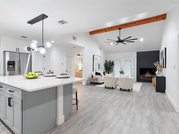 **Seller offering $10K towards closings costs/rate buy down with full price offer!!** Welcome to this beautifully remodeled modern mid-century gem! This one-story, 3-bedroom, 2-bathroom home effortlessly blends timeless design with contemporary updates. Step inside to discover an open floor plan illuminated by natural light, highlighting sleek tile flooring throughout. The vaulted ceiling in the living room creates a sense of grandeur, complemented by a striking fireplace that serves as a cozy focal point. The kitchen and bathrooms feature updated finishes and fixtures, combining style and functionality for everyday living. Tucked in the desirable Quail Creek community, just minutes to a plethora of retail, dining and entertainment options including the Domain & Austin FC Stadium. Don't miss this chance to own a thoughtfully updated masterpiece!