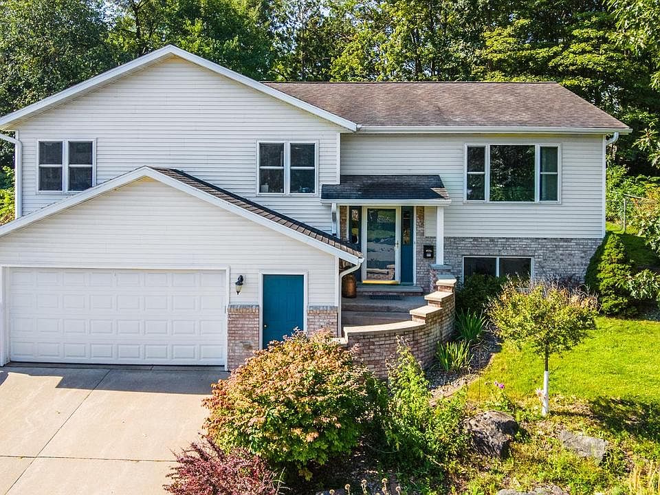 Nestled on nearly half an acre, this rare and beautifully maintained property is a true gem you won?t want to miss. Offering the perfect blend of comfort, functionality, and charm, the main home features 4 spacious bedrooms and 2.5 bathrooms, with real hardwood floors flowing throughout the main level. The layout is ideal?with three bedrooms on the main floor, including a spacious primary suite complete with a walk-in closet and private ensuite. The other two bedrooms are generously sized with ample closet space. The heart of the home is the expansive kitchen that connects seamlessly to the dining area, which features sliding glass doors leading to a private, fully fenced backyard with a serene atmosphere?perfect for relaxing or entertaining. The dining room flows into a spacious Livingroom centered around a warm gas fireplace.,The lower level offers even more space with a large fourth bedroom, laundry room with storage, and a half bath, plus convenient access to the attached 2-car garage. But that?s not all?this property also includes an additional detached 2-car garage which is fully insulated, heated, and includes a workshop area for your projects or hobbies and a charming guest house featuring 1 bedroom, 1 bathroom, a kitchen, and a cozy living area, with additional space for storage and to keep water heater and furnace tucked away. The guest house /garage furnace can heat just the garage or both garage and guest house. The guest house also has a mini split to heat and cool, installed in 2021. Whether used for visiting guests, multigenerational living, or as a successful Airbnb opportunity, this space is a valuable bonus. Updates include a new tankless water heater in main house about 3 years. Countertops, backsplash and vinyl planking lower level also have been updated. Guest house is on a separate water and electric bill. Tucked away in a peaceful setting yet just minutes from local amenities, this home offers the best of both worlds?privacy and convenience. It?s a rare find with endless potential. Don't miss your chance to own this one-of-a-kind property!