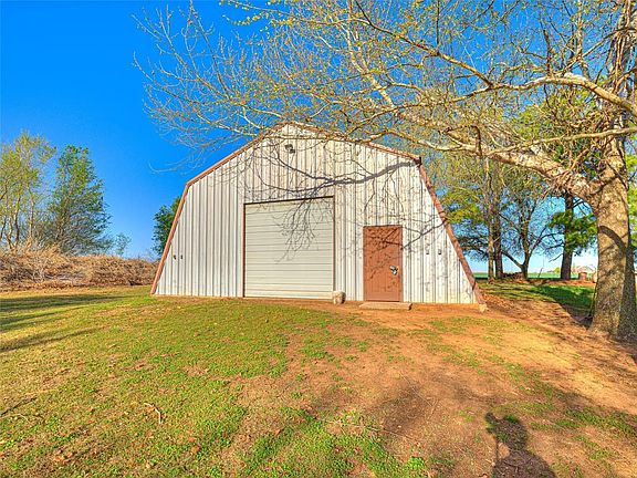 The standout feature? A massive metal shop with an oversized rolling door, concrete floor, electricity, heating and air, and a large separate office with additional overhead storage—perfect for business, hobbies, or serious workshop needs.
