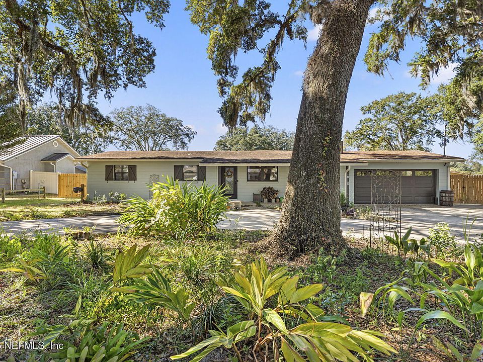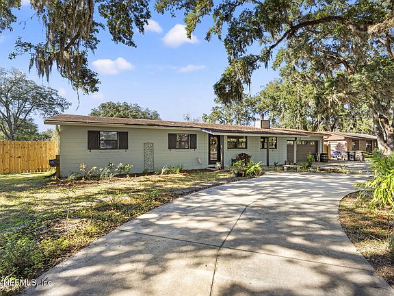 Welcome home to this spacious and beautifully updated property situated on an oversized lot with no HOA or CDD! The gorgeous front yard showcases mature oak trees that create a majestic first impression while providing natural shade. Inside, a stunning wood-burning fireplace encased in solid marble anchors the living area, while the oversized kitchen features granite countertops, sturdy oak cabinetry, a gas stove, and a large food-prep island—perfect for entertaining. With 4 bedrooms and 2.5 bathrooms, the home combines original terrazzo flooring with updated LVP for the perfect blend of classic charm and modern comfort. A wide driveway leads to a 2-car garage and circular drive, offering plenty of parking. The expansive backyard is ideal for adding a pool, creating a garden, or hosting outdoor gatherings, and includes a powered shed ideal for a workshop or home office. The property also features a well for irrigation, a water softener, and RV hookup access. Recent updates include a new AC unit, ensuring peace of mind. Conveniently located just off Hammond Blvd, this home provides easy access to major highways, shopping, and diningoffering the perfect balance of comfort, space, and convenience.