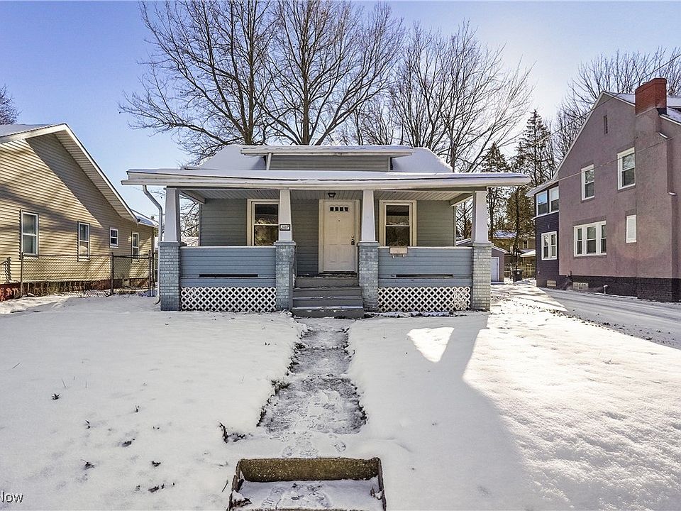 Cute as a button! Check out this 2 Bedroom and 1 Bathroom Bungalow in Goodyear Hts! Lovely full front porch and fully fenced in back yard. Roof new in 2023, per prior seller. Updated electric November 2024. Kitchen features a breakfast nook, pantry closet and lots of cabinet storage. Dining room has charming built-ins for additional storage. Updated bathroom and decent sized bedrooms. Full unfinished basement ready for finishing for additional living space. 1 car detached garage. This home is perfect for first time buyers, investors, or anyone looking to downsize to a perfect sized home. Way cheaper than paying rent, and down payment assistance programs available to those who qualify.