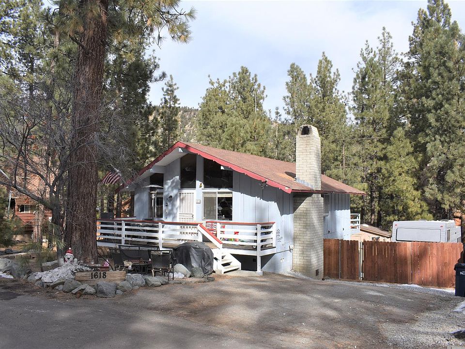 Lovely mountain home in the heart of Wrightwood! This charming 3 bedroom, 2 bathroom home has a nice open kitchen to the living room featuring a beautiful wood burning fireplace. Ceiling fans throughout the 2 bedrooms upstairs and the master bedroom downstairs. Indoor laundry is a definite plus during those winter months. The front and rear decks are perfect for that morning cup of joe. Multiple mature trees and privacy fencing for RV parking. Other extras include a 200 amp electrical service, RV hookups for electrical with dump station connected to septic tank and a large 10x16 storage shed/workshop with electricity, and a brand new hot water heater just installed. Perfectly located just steps to the village and the famous Wrightwood Country Club!