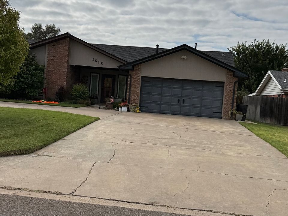 **Owner is a licensed real estate agent in the state of Oklahoma.** Welcome to this warm and inviting 3-bedroom, 2-bathroom home that perfectly blends comfort, functionality, and charm. Step inside to a bright open-concept kitchen and living area, ideal for family gatherings and entertaining guests. The home features new flooring throughout and windows replaced in 2022 with a lifetime transferable warranty, ensuring years of worry-free enjoyment. The spacious 2-car garage and extended driveway provide plenty of parking, while the mature landscaping and 6-zone sprinkler system keep the yard beautiful year-round. Inside, you'll appreciate ample storage space throughout the home plus added attic storage for seasonal items. A highlight of the property is the impressive 30'x40' shop, featuring two overhead doors and a finished room with a full bathroom, closet, and heat/air-making it an excellent option for a hobby room, guest quarters, or even a home office. This property is a must-see for anyone seeking a well-maintained home with modern updates, abundant space, and flexible living options.