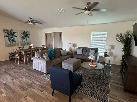 Escape to your own private paradise in this stunning 4-bedroom, 3-bathroom home in Cape Coral. Designed for ultimate relaxation and family fun, this beautiful property offers the perfect blend of cozy comfort and breathtaking luxury. Whether you're here for a relaxing getaway or a fun-filled family adventure, this home provides everything you need to unwind and create unforgettable memories.
