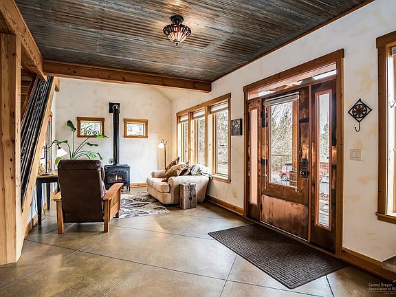 Sustainably constructed with attention to detail in every aspect. This one of a kind mini-estate is nestled on a .23 acre double lot on Bend's westside. Your green thumb will delight with the bountiful orchard complete with a seasonal fruits, flowers, berries, & hops. Relax under the covered paver patio while enjoying the trickling water feature & custom chicken coop. Enter this Earth Advantage home through the historical copper doors from the old Bulletin site. Artistically intriguing elements throughout including front entry reclaimed beams from a lumber mill in Dunsmuir to a stair case that was reclaimed from the chassis of a Winnebago. The main level cement floor is specifically designed in conjunction with the front windows to harvest the sun & redistribute the heat throughout. Outstanding open floor plan with main level master & second story bonus room. Complete with detached garage with second story ADU. This is truly a special home.