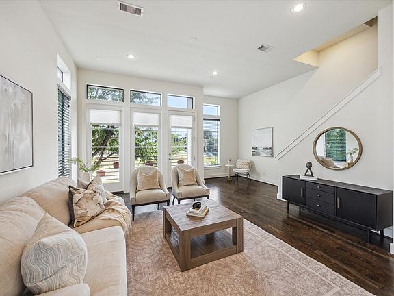 Fabulous freestanding patio home located in the booming Arts District! This gorgeous 3 bedroom/3.5 home is perfectly situated on quiet street with stunning views of Downtown. Ideal floor plan with first floor guest bedroom or optional office. Light filled living spaces are featured on the second floor, along with gleaming hardwoods and soaring ceilings. The timeless kitchen boasts abundance of cabinetry, eat-in island, gas range and Stainless Steel Appliances. Lovely balcony off of living room. Spacious primary suit with generous walk-in closet and bath including soaking tub, separate shower and dual vanities. Fourth level features incredible rooftop patio with Trex Deck and an exceptional view of Houston skyline. HOA includes private community dog park. ONE block from Bike trail! Amazing proximity to restaurant, retail and grocery… the perfect place to call home!!