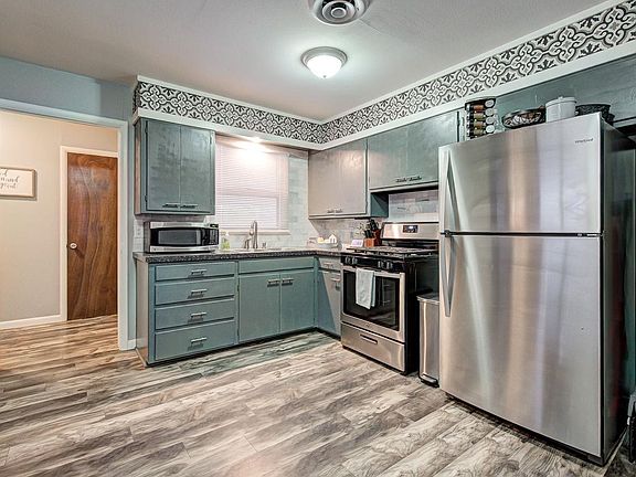 Welcome home! This 3-bedroom, 1.5-bathroom property features a spacious living room with an open flow into the kitchen, perfect for gatherings. The kitchen comes equipped with a gas range and updated appliances. Fresh paint and wood-look flooring extend throughout the home, while the upgraded bathrooms showcase granite countertop. A convenient laundry room/mud room adds ease to everyday living. Located along the Enid walking trail with fenced access, this home offers both comfort and convenience in a prime location, just a few miles away from Vance Air Force Base