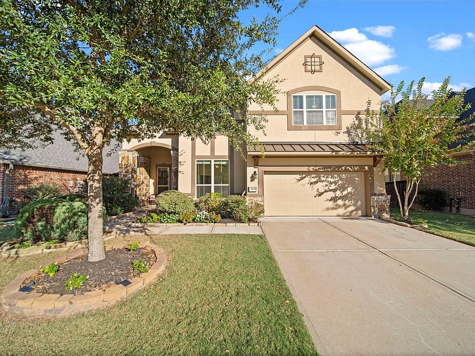 Beautifully maintained, exceptionally priced. This home feels way bigger than the 3,300+ SF it is, because of the amazing floorplan. You’ll have to see for yourself. The private backyard has no back neighbors and opens to a wide, open, privately owned property. The expansive and open flowing kitchen showcases a massive island, granite countertops, double ovens, and rich cabinetry. The living room has soaring ceilings, a wall of windows, and a cozy fireplace. The study is across from the dining room. Big bedrooms throughout. The master suite is downstairs with serene backyard views and features a spa-like bath with dual vanities, a soaking tub, and a separate shower—game room, media room, 3 big bedrooms, 2 bathrooms up. Covered patio gets the afternoon shade. You can use your imagination to do what you will with the oversized extended patio.