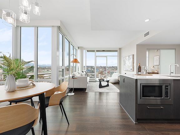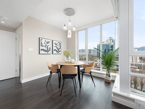Welcome to Central by Onni! This rare corner unit features 2 beds, 2 baths, a flex room, a den, and balcony offering versatility and space. This bright northeast-facing home showcases stunning city and mountain views and includes central AC and heating for year-round comfort. The modern kitchen boasts integrated stainless-steel appliances and sleek quartz counters. Enjoy luxury amenities like a full-time concierge, rooftop dining terrace with a garden, full-size gym, party room, and theatre. Steps to the seawall, Skytrain, and Olympic Village. Includes 2 side-by-side parking spots and a storage locker. Don’t miss this exceptional opportunity to own in one of Vancouver’s most sought-after neighbourhoods!