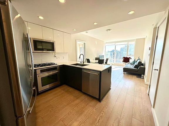 Central is the most architecturally significant residential building in Vancouver. Located in Southeast False Creek, Central is close to amenities, transit & is 60 seconds to the waterfront! This south facing, 879 sq ft, 2 bed + flex home is located in the unique Skybridge & offers sweeping city views. The open kitchen has ample storage while the master bedroom includes a walk-in closet & a large ensuite complete with soaker tub, separate frameless shower & a double vanity. A convenient flex room is ideal for extra storage or as a home office. Homeowners can enjoy the 7000+ sq ft Wellness Centre which includes gym, yoga, steam & sauna rooms, theatre & rooftop garden plots. Built by award winning Onni Group.