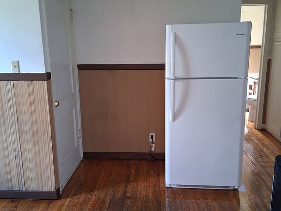 Tenant pays all utilities. Tenant is responsible for keeping apt clean, changing batteries in the smoke detector and carbon monoxide alarm. Tenant is responsible for shoveling snow off the top of garage and sidewalk on the side of house, and cutting grass in the backyard. There is street parking, and parking up in the back. No smoking in the house, outside only. Pets are allowed with a $200 non-refundable pet deposit, and $25 per month per pet. No large nails or screws allowed on walls. Basement and garage to apt are not included.