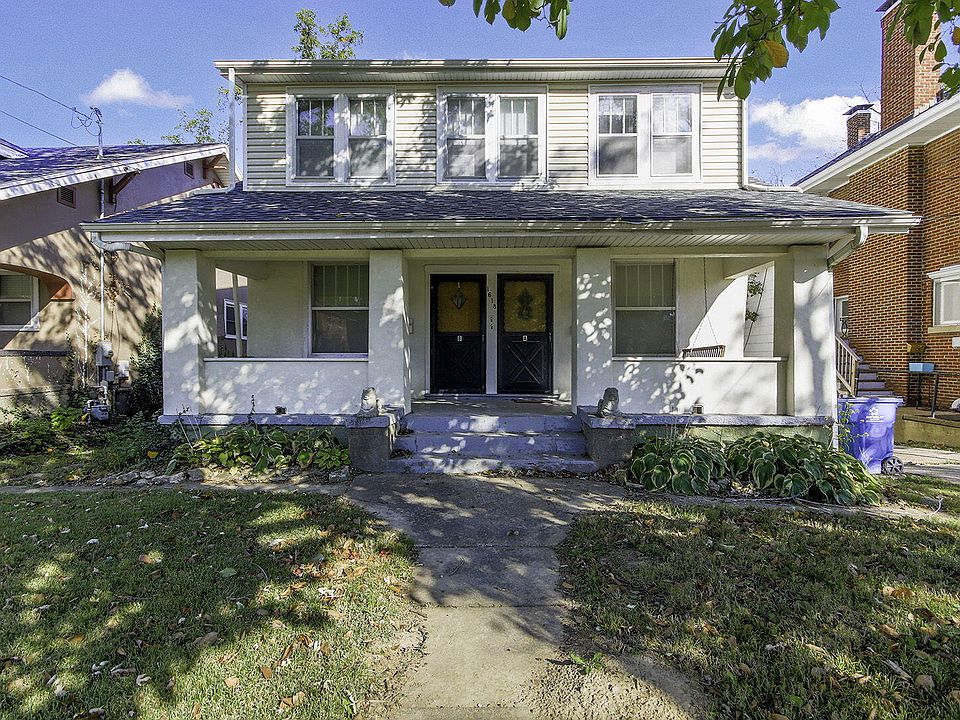 Charming Historic Duplex with Great Income Potential! Welcome home to this delightful property full of character and charm! Enjoy relaxing on the inviting front porch. Major updates were completed in 2021, including a new roof, siding, gutter guards giving you peace of mind for years to come. Inside you'll find beautiful wood floors, high ceilings, and thoughtful details throughout. Each unit offers 2 bedrooms, 1 bathroom, a living room, dining room, kitchen, and back sun porch—perfect for flexible living or investment income. The main-level unit (with a long-term tenant) features an extra bonus room, stunning exposed ceiling beams, and a darling pantry for added charm. The property also includes a basement garage, a detached garage, and a spacious backyard—ideal for outdoor enjoyment. This home is being sold as is and offers an excellent opportunity to live in one unit and rent the other. With its mix of historic beauty and modern updates, it's a gem you won't want to miss.