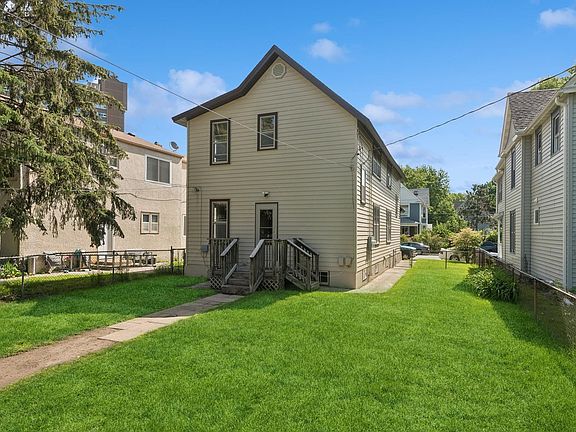 1900 Built up/down duplex features a newer roof on the house & garage, newer soffits, steel siding, wrapped windows, chimney, and overhead garage door. Each unit offers 2 bedrooms & orignial maple floors. Additional highlights include a 2 car garage, fenced backyard, and a 3-season front porch. Both units need TLC. This a fantastic opportunity to live in one unit while earning income from the other. Don't miss out on this great investment opportunity!