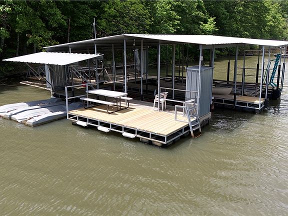 Lakefront Luxury! Meticulously maintained 4-bed, 3-bath home with recent upgrades: new roof, fresh exterior paint, and professionally landscaped grounds. Enjoy lake living with a private boat dock (1 slip included; neighbor shares expenses for the 2nd), two WaveRunner spots, and a swim deck for summer fun. Inside features real wood floors, granite counters, Bosch appliances, and a flexible layout with two living areas—each with charming wood-burning fireplaces. The primary level offers lake views from multiple decks (screened porch included), while the lower level has a fireplace with whole-house heating ducts for cozy winters. Renovations include 3 remodeled bathrooms, a spacious laundry room, and workshop area. All furniture, towels, sheets, and glassware convey! Currently a successful short term rental; this all-electric home includes central vac, 200-amp service, and double-pane windows. Lakefront serenity meets modern comfort—your dream retreat awaits!