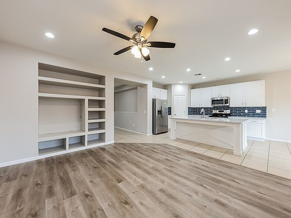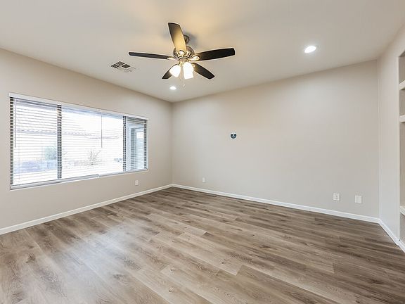 Please note, our homes are available on a first-come, first-serve basis and are not reserved until the lease is signed by all applicants and security deposits are collected. This home features Progress Smart Home - Progress Residential's smart home app, which allows you to control the home securely from any of your devices. Want to tour on your own? Click the "Self Tour" button on this home's RentProgress. Come see this four-bedroom, three-bathroom rental home in Surprise, Arizona. The living room has a lighted ceiling fan, recessed lighting, and windows overlooking the covered patio outside. Built-in shelving provides the perfect space for books, photos and entertainment devices. An adjacent dining room has multiple windows, a chandelier, and a sliding door that opens onto the patio. The main bedroom, which has backyard-facing windows, includes a private entrance onto the patio. In the huge en suite bathroom, you'll find two separate vanities, a walk-in shower, a tub, and a spacious walk-in closet for convenient clothing storage. Make a tour appointment today.