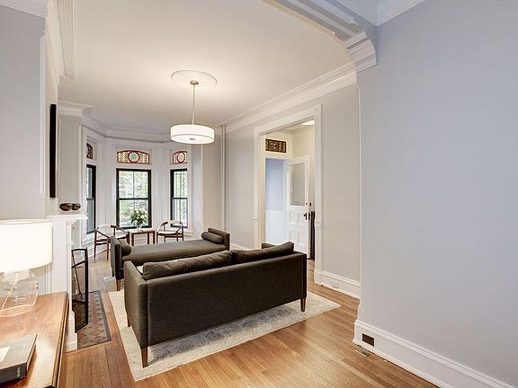 3 levels of comfortable living , full furnished,. (House is currently set up as 3 bedroom, but TV room can be changed back to 4th bedroom). 3 large bedrooms (1 King, 2 Queens ) with fluffy down confronters and high quality sheets, 3.5 recently renovated modern bathrooms, large TV room with wide screen TV, dining room that seats 10, fully equipped gourmet kitchen, outdoor seating with a large weber grill, grand entertaining room on first level, soaring ceilings and original wood and plaster molding throughout the house. There is a full-sized washer and dryer, digital cable and WIFI throughout the house.