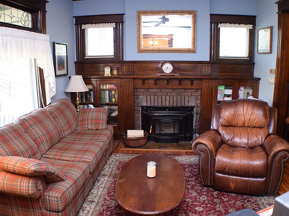 Rich historic charm w/updated kit & BA on HUGE lot!Gorgeous hdwd flrs on the main floor combine w/natuaral wdwk & stained glass windows to give this home a warm,rich feel. Remodeled BA w/heated, ceramic tile floor! Updated kit w/warm wood cabinets & stainless appls. Stunning, beveled, leaded glass dr w/sidelights! AMAZING fenced yard w/lots of room to play, 2 car garage, expansive front porch!