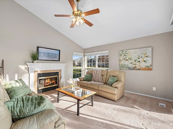 Welcome to this rare and sought-after 1st floor end unit ranch townhome in desirable Fairfax Commons. This beautiful home is filled with sunlight. The living room features vaulted ceilings and a fireplace with gorgeous views. Relax or gather with friends on the private patio. The flexible den/office with French doors provides the perfect space for remote work or relaxation. The kitchen is adorned with granite counters, adding a touch of sophistication to the heart of the home, and is open to the breakfast room. The spacious primary bedroom features a walk-in closet and en suite full bath with large vanity and a walk-in shower. The generously sized second bedroom has a large closet. The large laundry/utility room offers plenty of storage. This home has been lovingly maintained and has been freshly painted throughout. Oversized attached two-car garage for your convenience, with additional guest parking available. Don't miss the opportunity to make this gorgeous property your own.