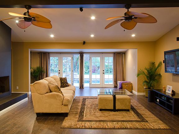 This home has been recently remodeled. Property features 2 bedrooms & 2 full bathrooms. Master suite has custom his/her closets. Large space for nursery or office. French doors lead you to the pool. Master bathroom features floating vanity, temperature controlled rain shower, imported European tile and frame-less glass shower doors. Custom kitchen features Brazilian granite, Jenn-Air appliances, pantry, laundry area and direct access to the garage. Kitchen is open to the dining room. Large open living room features fireplace, Havana ceiling fan and surround sound. Through the doors is a lush tropical entertainers back yard featuring a 50 ft. Canary Island Date Palm, heated pebble tech finished pool and elevated spa that can accommodate up to 10 people.