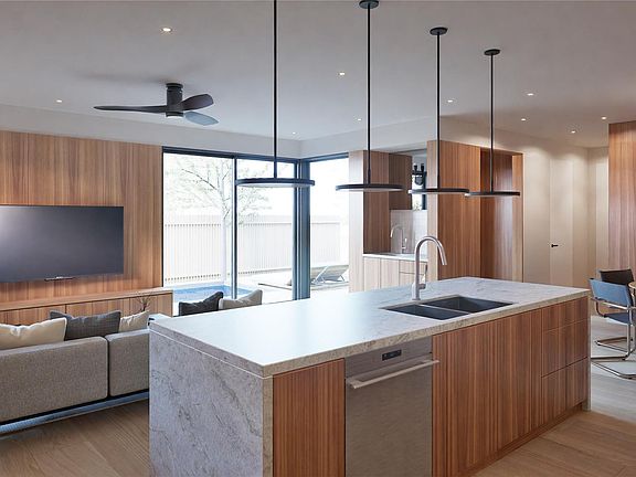 Private poolPremium finishesHigh-volume windowsWhite oak flooringNatural lightLush landscapingElegant stone countertops
